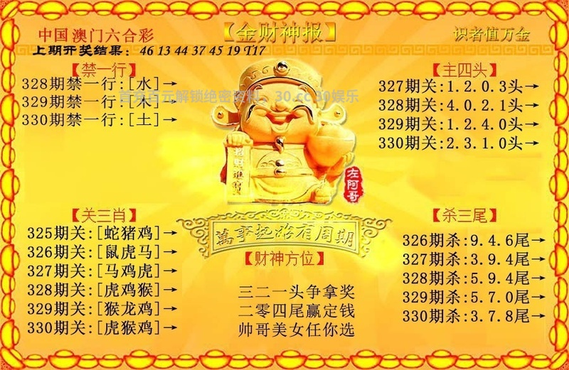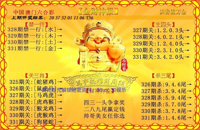 330期:发财七肖〖虎鼠兔猴牛狗〗开:马36准